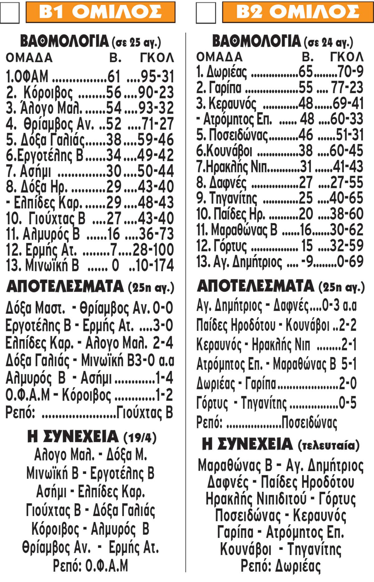 Την τελευταία αγωνιστική θα κριθεί το τελευταίο εισιτήριο ανόδου στην Β1 και στην Β2 ΕΠΣΗ, ενώ ανέβηκε στην Α2 και ο Κόροιβος από τον πρώτο όμιλο, μετά το πέρας της 25ης αγωνιστικής , που ήταν η προτελευταία του πρωταθλήματος της Β’ κατηγορίας.