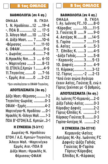 Οι Ν. Ηροδότου κέρδισαν δύσκολα με 1-0 το Μαρτινέγκο στο γήπεδο του Εργοτέλη, ενώ με ανατροπή ήρθε το τρίποντο για τον ΠΟΑ Β’ (3-1 τον ΕΓΟΗ / Α.Ε. Κρητών) στο Ατσαλένιο.