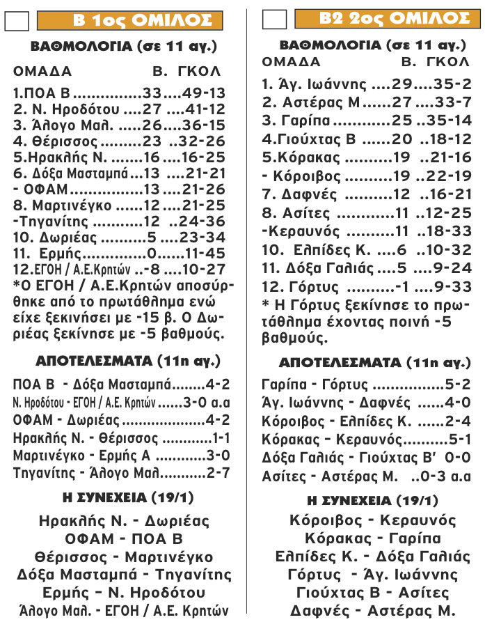 Ασταμάτητος και… απόλυτος είναι ο ΠΟΑ Β στη Β1 ΕΠΣΗ, ενώ στη Β2 παραμένει επικεφαλής της… κούρσας ο Άγιος Ιωάννης μετά το πέρας της 11ης αγωνιστικής, που ήταν η πρώτη για το 2025.