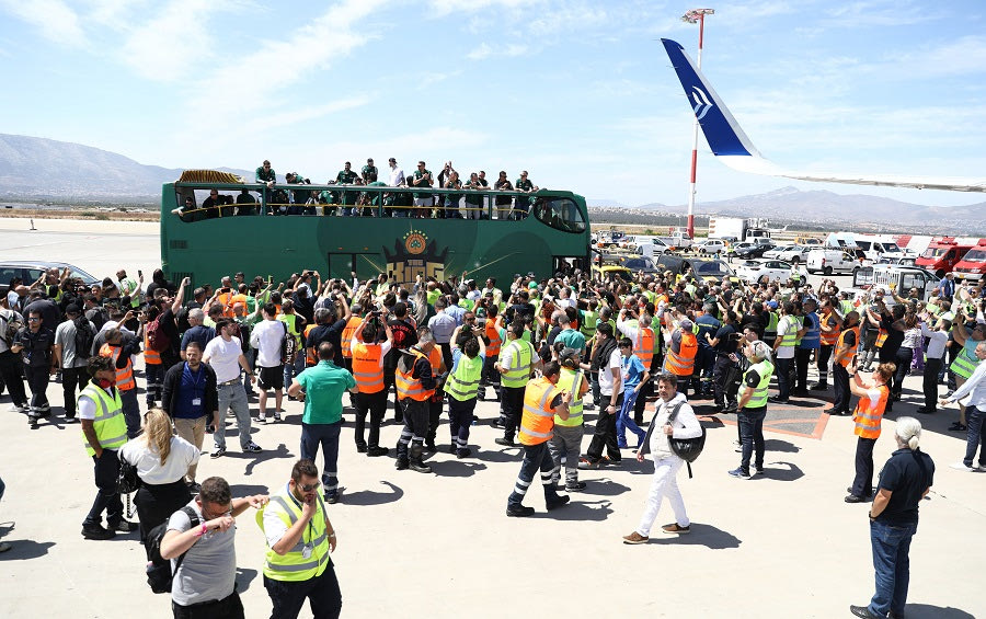 Περισσότεροι από 4.000 φίλοι των «πράσινων» που είχαν κατακλύσει από νωρίς το «Ελ. Βενιζέλος» δημιούργησαν ατμόσφαιρα… Λεωφόρου στο αεροδρόμιο.