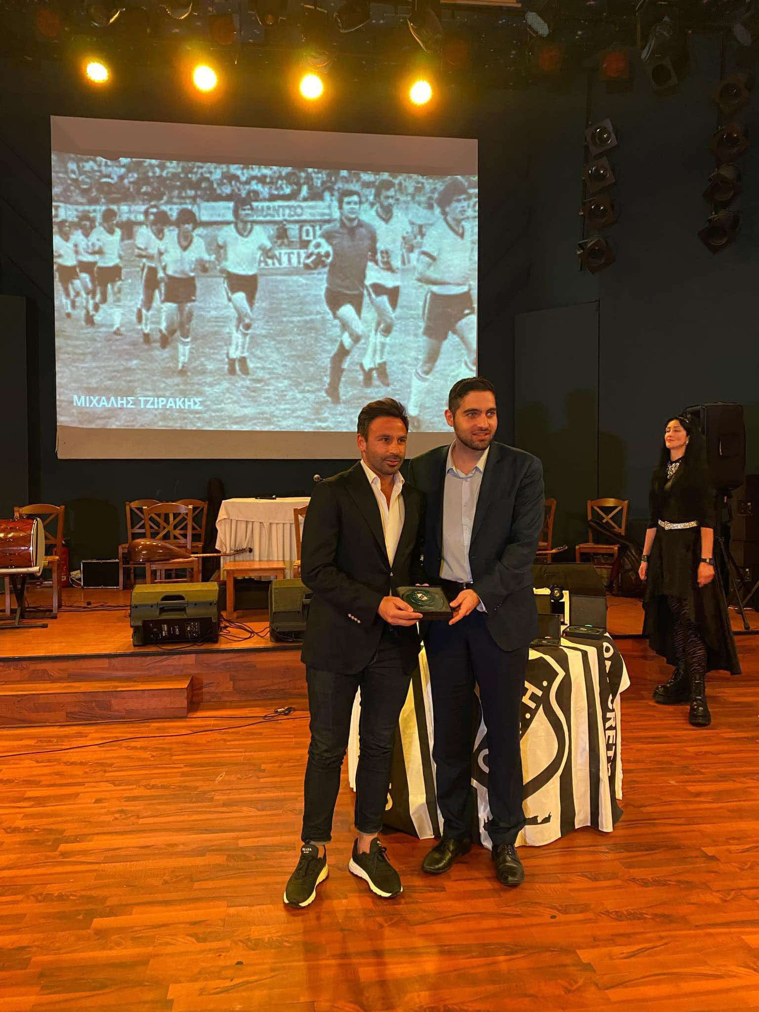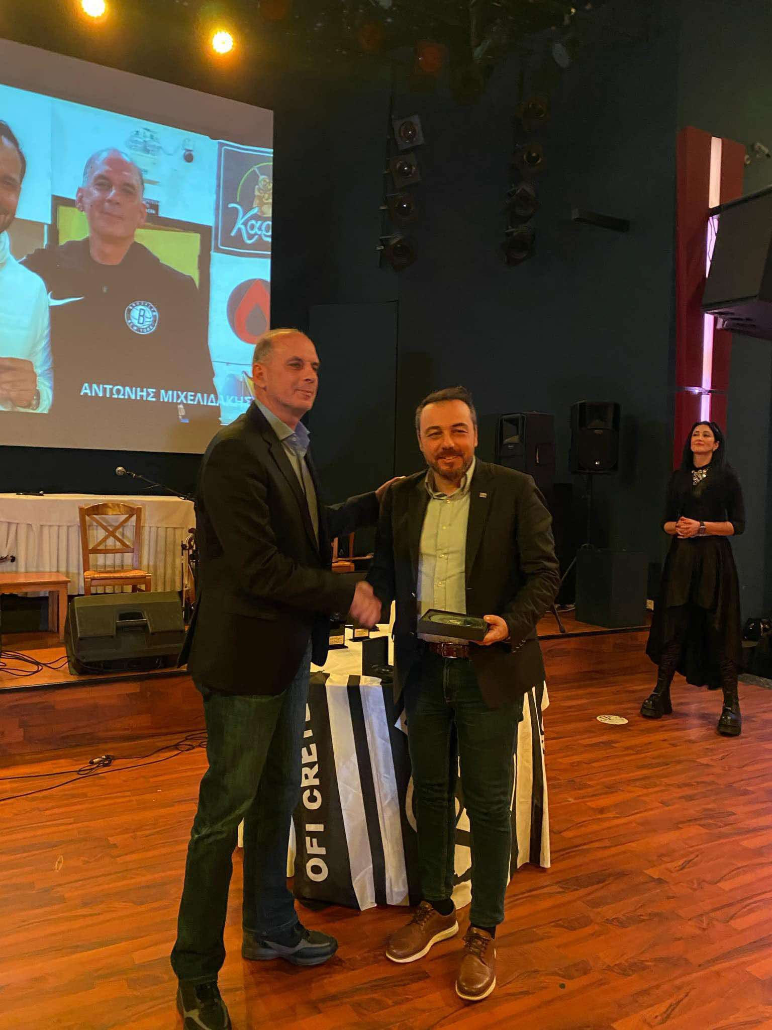 Το βραβείο παρέλαβε ο πατέρας του και προπονητής του ΟΦΗ, Μπάμπης Ρεθυμνιωτάκης. Την βράβευση έκανε ο βουλευτής του ΚΚΕ Μανώλης Συντιχάκης.