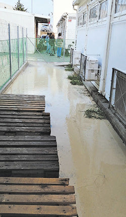 Σκούπες, κουβάδες και σφουγγαρίστρες από το σπίτι τους έφεραν χθες οι εκπαιδευτικοί των 13ου και 42ου Δημοτικών σχολείων Ηρακλείου στον Κατσαμπά. Το κτήριο πλημμύρισε, η αλουμινένια πόρτα έβαζε νερά, η αυλή έγινε ποτάμι, τα παιδιά δεν μπορούσαν να πάνε στις τουαλέτες.