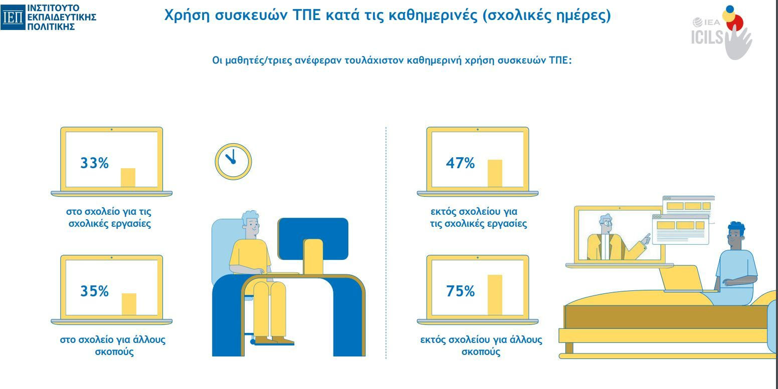 Περίπου τρεις στους τέσσερις μαθητές σε όλες τις χώρες και στην Ελλάδα δήλωσαν ότι χρησιμοποιούν ψηφιακές τεχνολογίες καθημερινά εκτός σχολείου για σκοπούς που δεν σχετίζονται με το σχολείο.