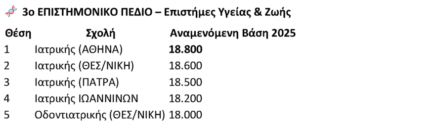 🔹 3ο Επιστημονικό Πεδίο (Υγείας και Ζωής)
