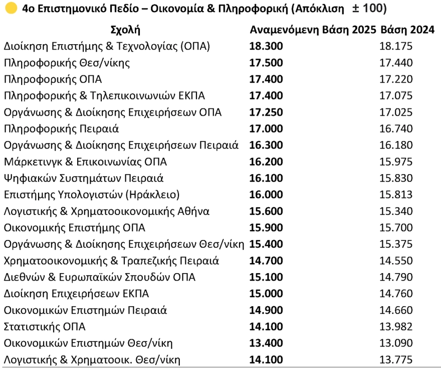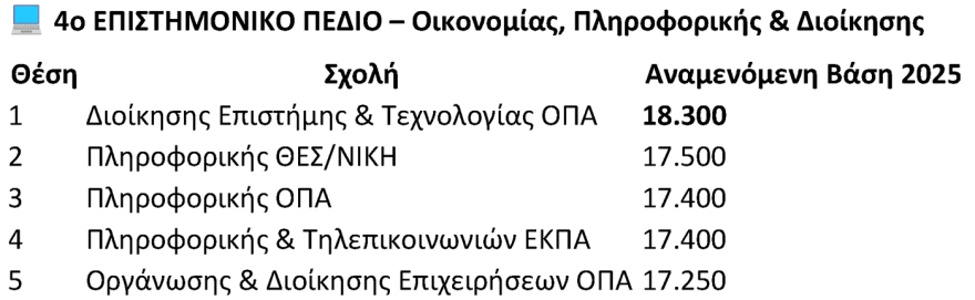 🔹 4ο Επιστημονικό Πεδίο (Οικονομίας και Πληροφορικής):