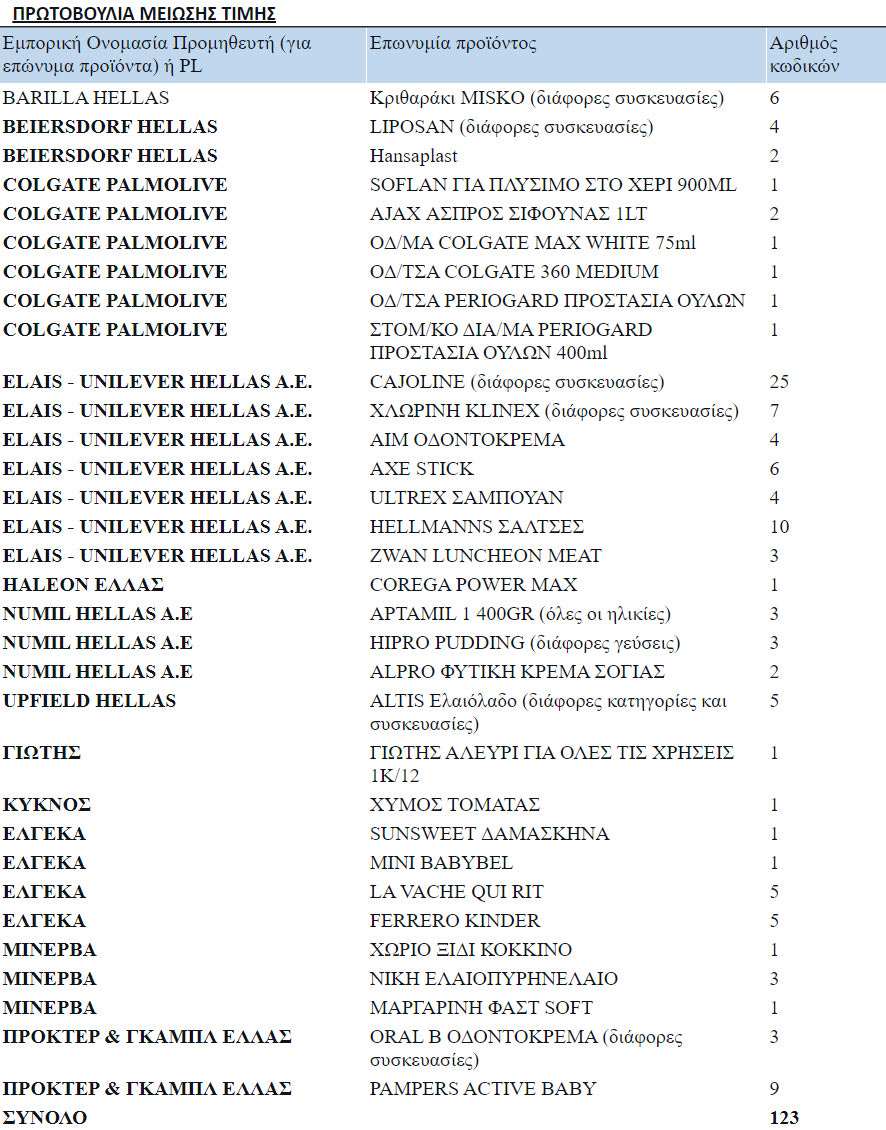 Στο μεταξύ όπως δήλωσε χθες στην ΕΡΤ ο Σωτήρης Αναγνωστόπουλος, γενικός γραμματέας Εμπορίου και Προστασίας Καταναλωτή: «Βλέπουμε ότι υπάρχει μια ανταπόκριση από τις επιχειρήσεις, έχουμε την προσδοκία ότι θα έχουμε περισσότερους ακόμα κωδικούς πολύ σύντομα. Σύμφωνα με την ανακοίνωση της Ελληνικής Ένωσης Σούπερ Μάρκετ, φαίνεται ότι αυτοί θα ξεπεράσουν τους 600».