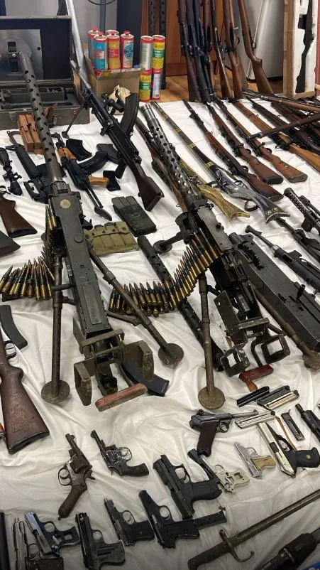 - Πλήθος εξαρτημάτων όπλων: 156 κάννες, 350 γεμιστήρες, 110 χειροφυλακτήρες, 50 κοντάκια, 45 λαβές, 80 θήκες, 6 σιγαστήρες και άλλα