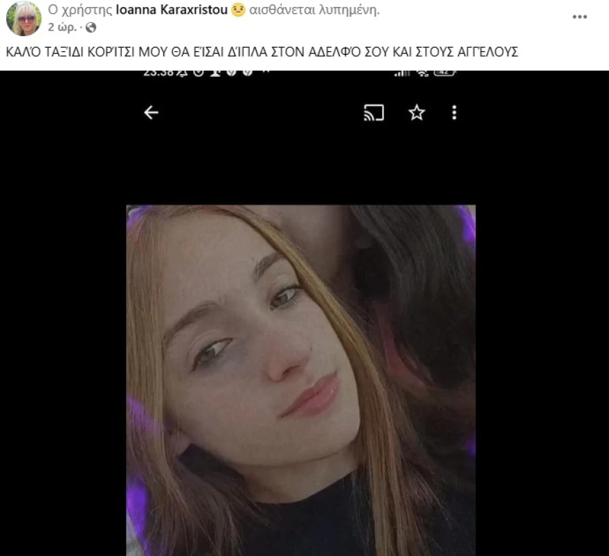 Η μητέρα των δύο άτυχων παιδιών, Ιωάννα Καραχρήστου, σε ανάρτησή της αποχαιρέτησε και την κόρη της γράφοντας: