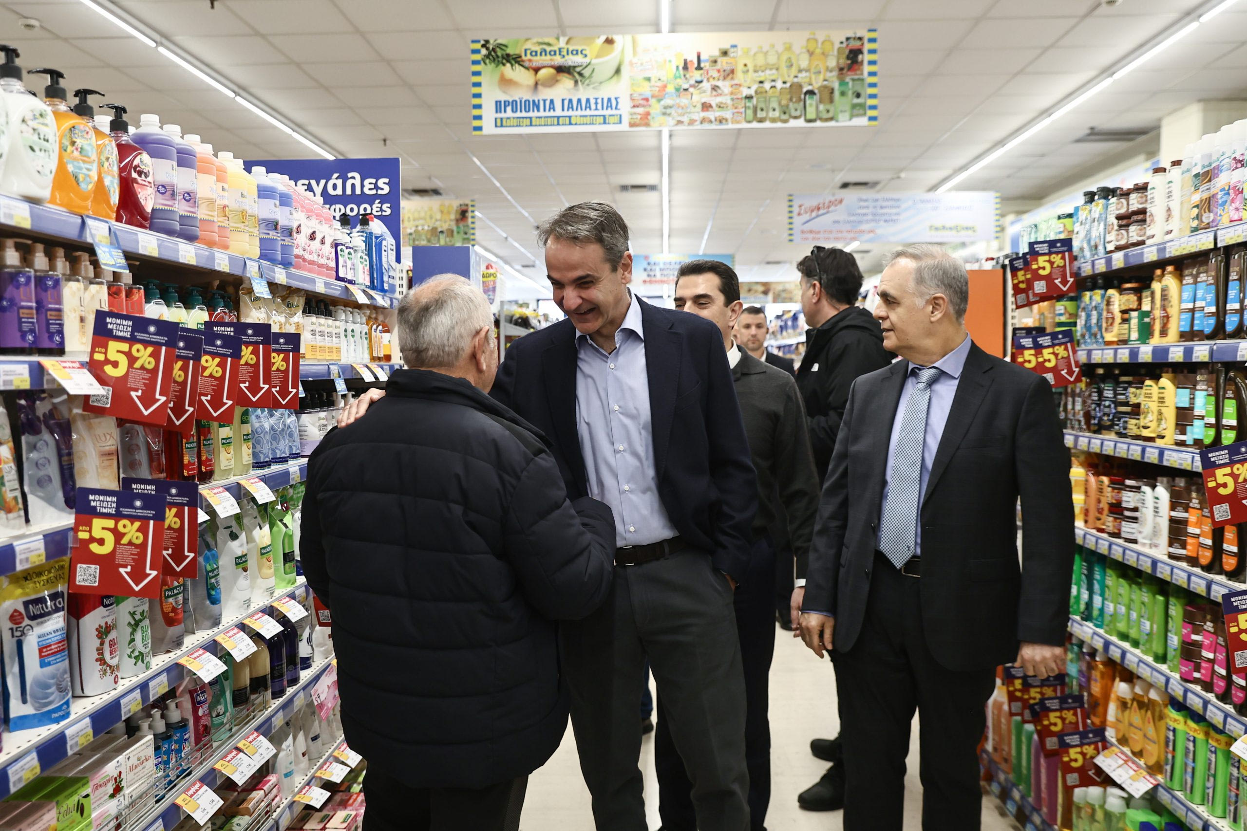 Σούπερ μάρκετ στη Λένορμαν επισκέφτηκε αιφνιδιαστικά το πρωί της Τρίτης (5/3) ο Κυριάκος Μητσοτάκης. Ο πρωθυπουργός θέλησε να ελέγξει την έναρξη εφαρμογής των νέων μέτρων για την ακρίβεια, η οποία σύμφωνα με την κυβέρνηση αναμένεται να φέρει πτώση στην τιμή σε χιλιάδες προϊόντα.
