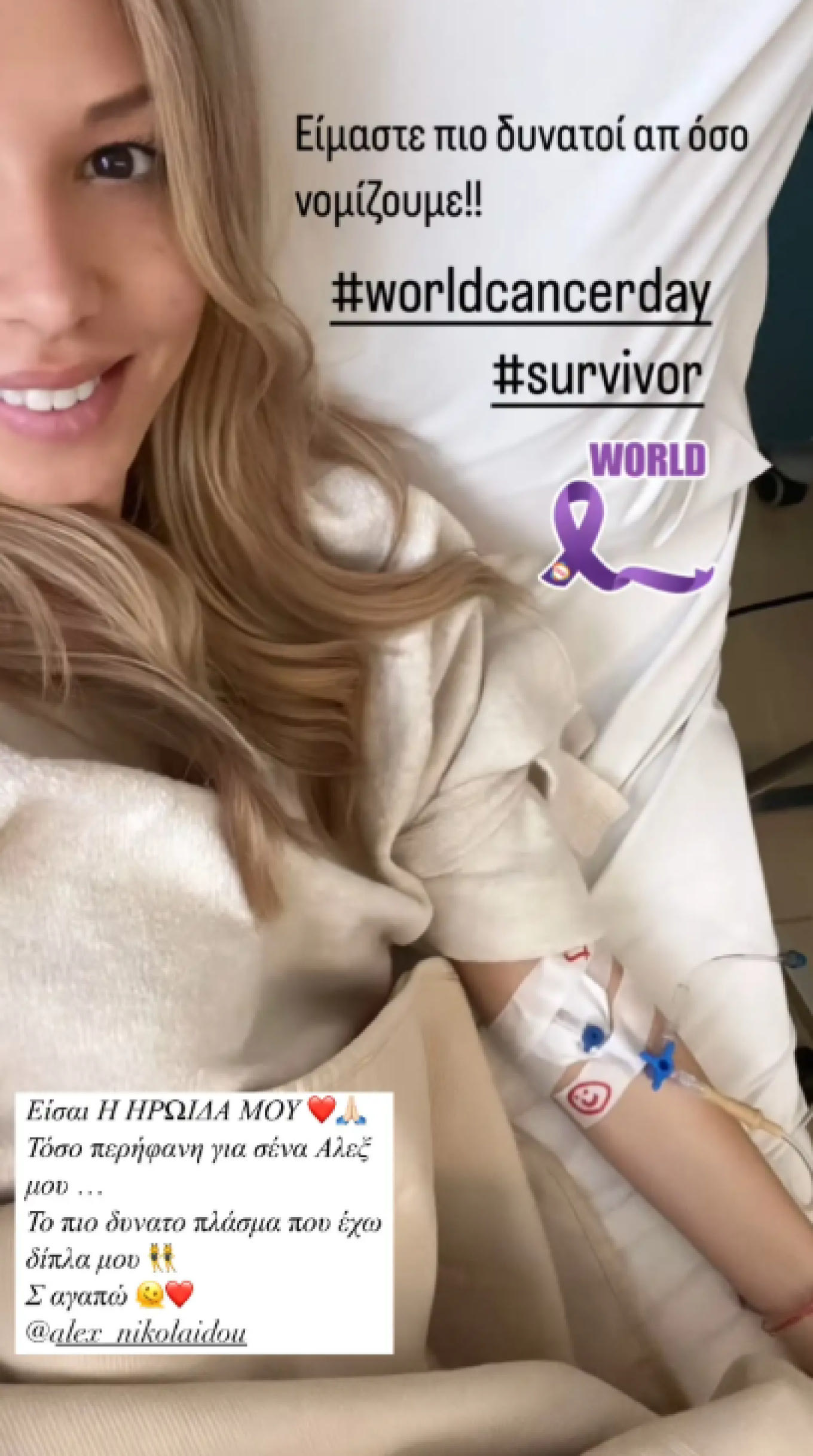 Η ίδια είχε αποκαλύψει τη μάχη που έδινε με τον καρκίνο του μαστού σε ανάρτησή της στις αρχές του χρόνου, ενώ ο σύντροφός της Ντέμης Νικολαΐδης στεκόταν διαρκώς δίπλα της στη διάρκεια του αγώνα της.