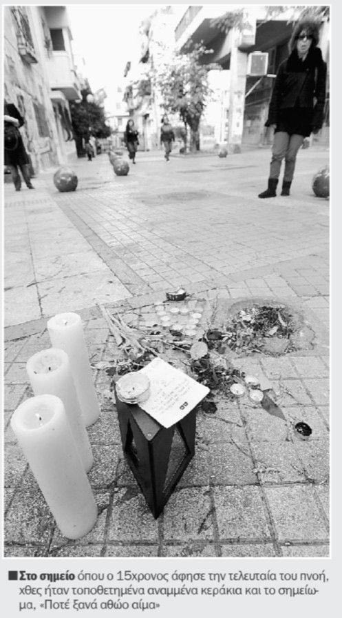 »Η κ. Αιμιλία και ο σύζυγός της Κωνσταντίνος κατοικούν σε πολυκατοικία της οδού Μεταξά και είδαν το σκηνικό της δολοφονίας του 15χρονου.