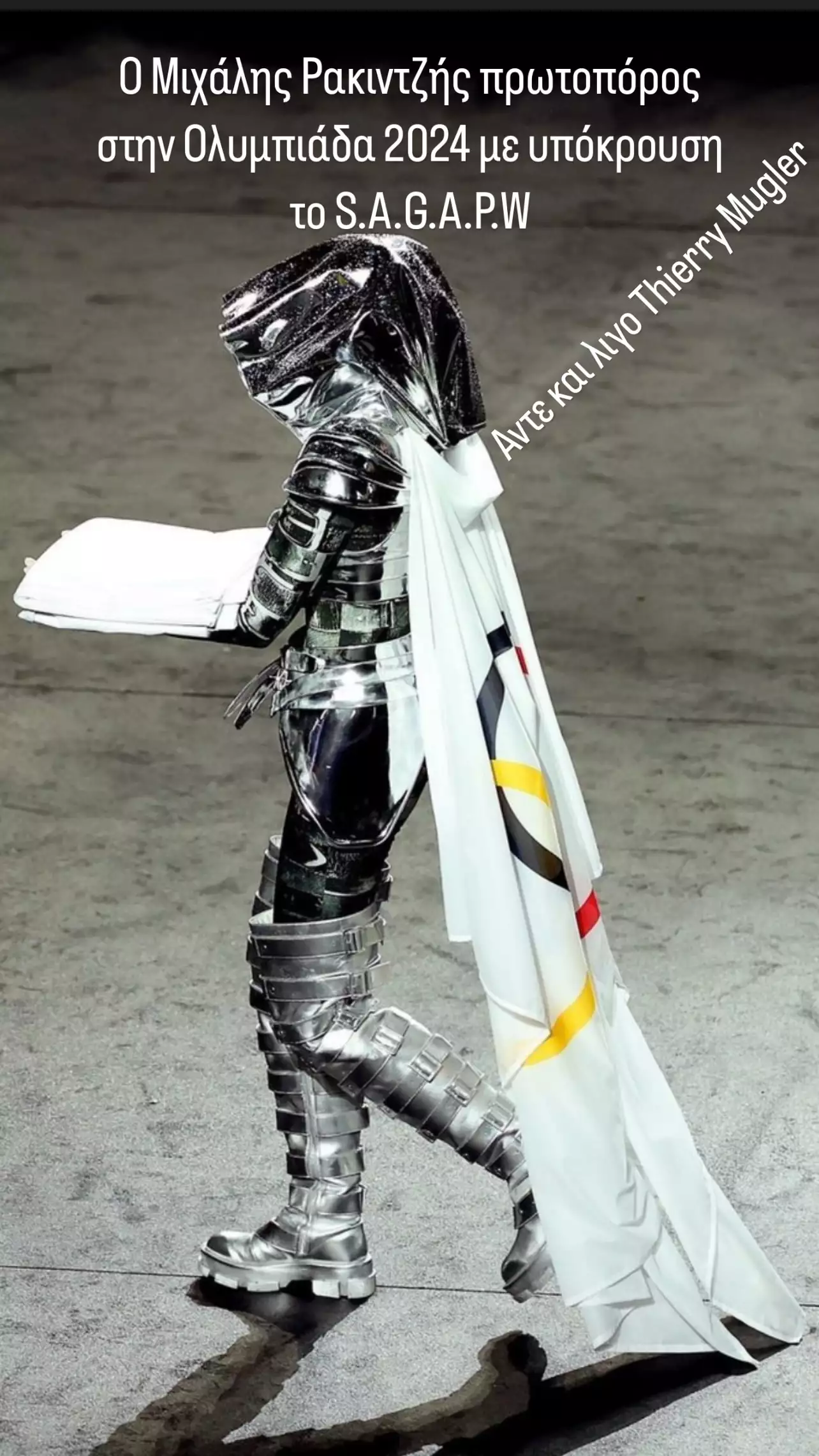 «Ο Μιχάλης Ρακιντζής πρωτοπόρος στην Ολυμπιάδα 2024 με υπόκρουση το S.A.G.A.P.O.», έγραψε στη λεζάντα και έκανε τους followers του να δουν τις ομοιότητες ανάμεσα στις δύο εικόνες.