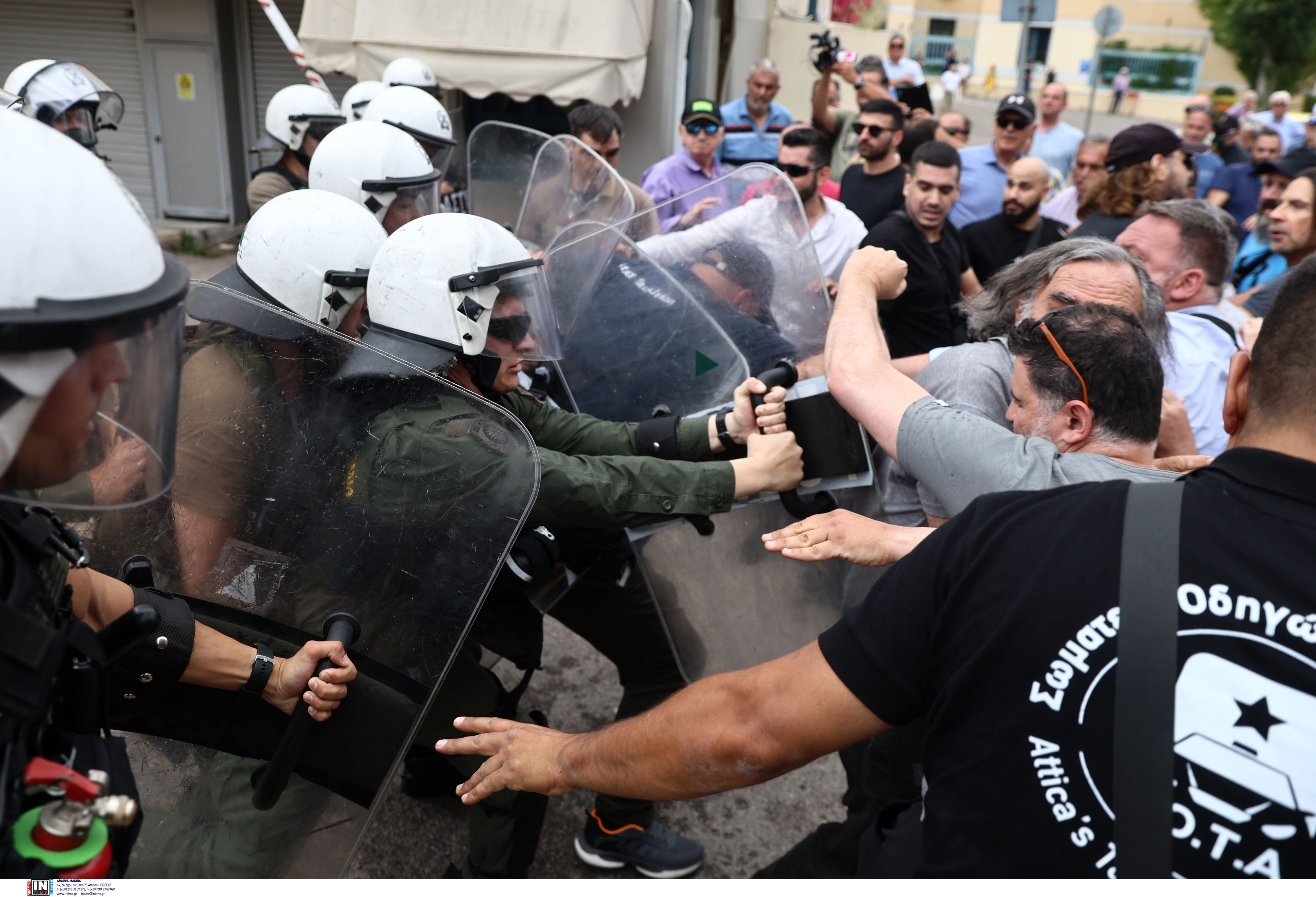 Το κλίμα έντασης που επικράτησε έξω από τον υπουργείο Μεταφορών αποτυπώνεται στις ακόλουθες εικόνες: