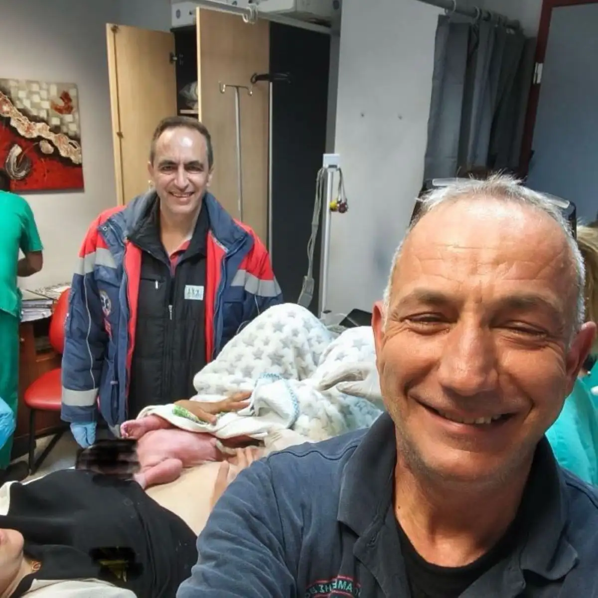 Οι γιατροί και οι διασώστες αντέδρασαν με ψυχραιμία και επαγγελματισμό, προσφέροντας την απαραίτητη φροντίδα τόσο στη μητέρα όσο και στο νεογέννητο, όπως αποτυπώνεται στη φωτογραφία.