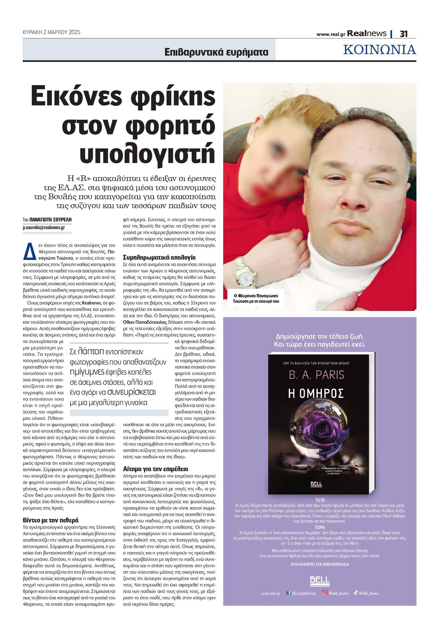 Η «R» αποκαλύπτει τι έδειξαν οι έρευνες της ΕΛ.ΑΣ. στα ψηφιακά μέσα του αστυνομικού της Βουλής που κατηγορείται για την κακοποίηση των παιδιών του.