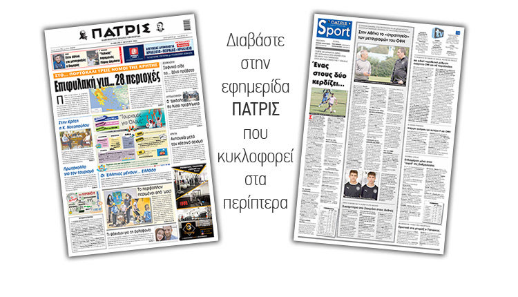 Διαβάστε στο πρωτοσέλιδο της εφημερίδας ΠΑΤΡΙΣτου