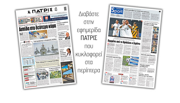 Διαβάστε στο πρωτοσέλιδο της εφημερίδας ΠΑΤΡΙΣ της Δευτέρας 27 Ιουλίου 2020 που κυκλοφορεί στα περίπτερα: