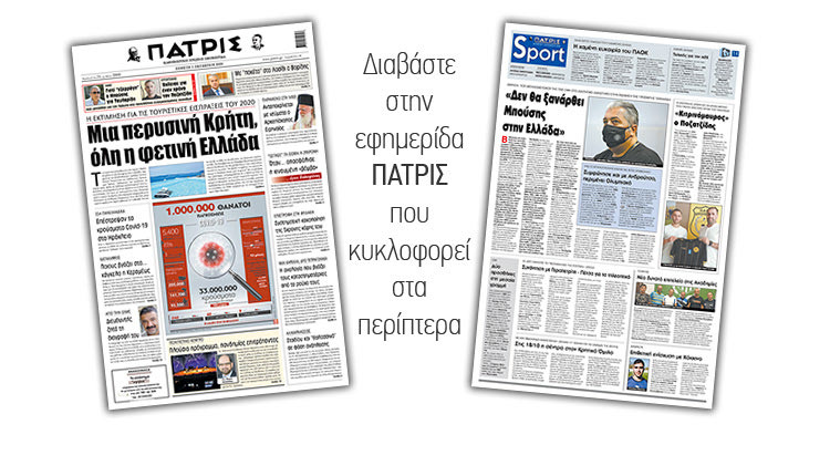Διαβάστε στο πρωτοσέλιδο της εφημερίδας ΠΑΤΡΙΣ της