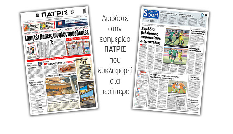 Διαβάστε στο πρωτοσέλιδο της εφημερίδας ΠΑΤΡΙΣ της Παρασκευής 28 Αυγούστου 2020 που κυκλοφορεί στα περίπτερα: