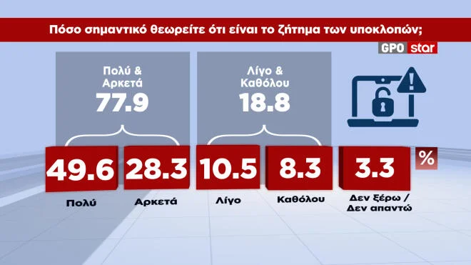 Τέλος, για το ζήτημα των υποκλοπών, σχεδόν το 78% το θεωρεί πολύ ή αρκετά σημαντικό.