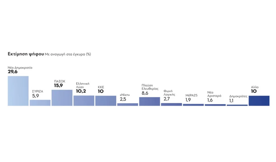 Πτώση στην πρόθεση ψήφου καταγράφει η ΝΔ σε νέα δημοσκόπηση της GPO για την εφημερίδα «Παραπολιτικά».