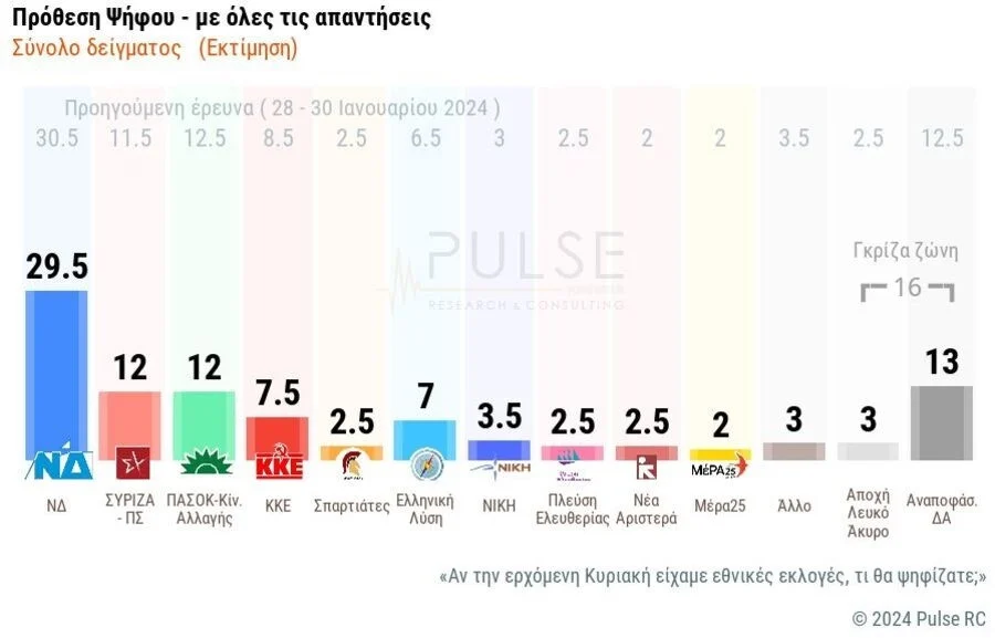 Αναλυτικά η δημοσκόπηση της Pulse για τον ΣΚΑΪ: