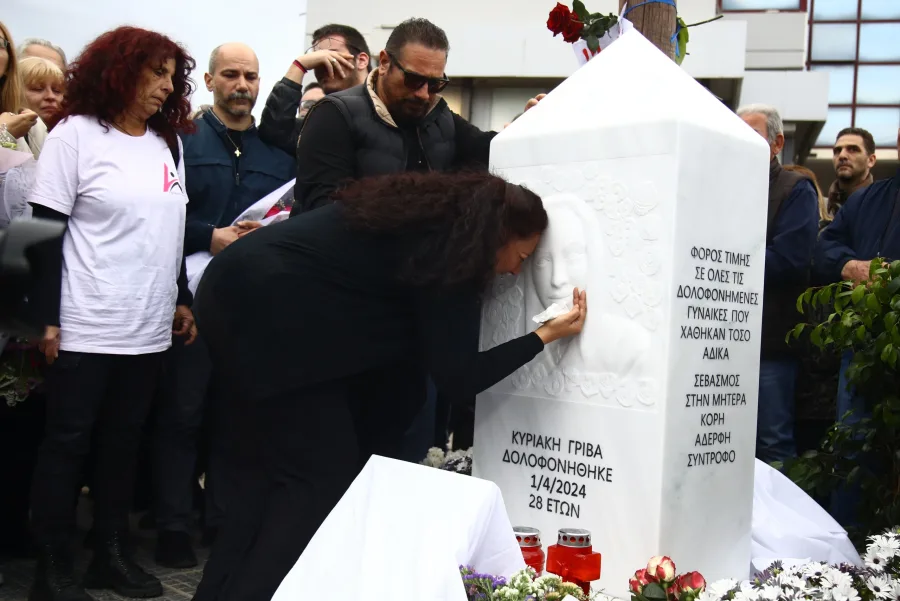 Μνημείο στη μνήμη της Κυριακής Γρίβα, που δολοφονήθηκε μπροστά από το Αστυνομικό Τμήμα Αγίων Αναργύρων την 01/04/24, από τον πρώην σύντροφό της.