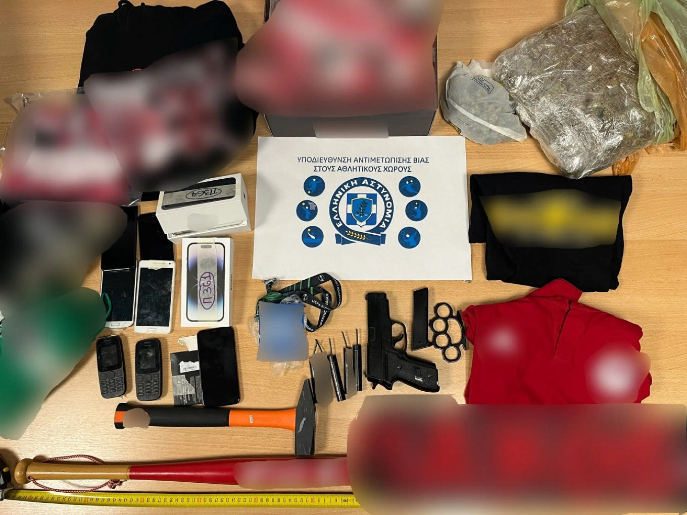 – Την 23-04-2023, μετά τη λήξη ποδοσφαιρικού αγώνα στην Αττική, οπαδοί επιτέθηκαν με αντικείμενα σε βάρος της αποστολής της φιλοξενούμενης ομάδας. Αστυνομικοί που επιχείρησαν να διαφυλάξουν την τάξη, δέχθηκαν σφοδρή επίθεση από περίπου -250- άτομα με καθίσματα, σιδερένια κοντάρια, φωτοβολίδες ευθείας βολής κ.α.. Από τις επιθέσεις προκλήθηκαν φθορές σε υπηρεσιακό εξοπλισμό ενώ τραυματίστηκαν -4- αστυνομικοί. Από τις έρευνες προέκυψε η συμμετοχή -7- μελών της οργάνωσης.