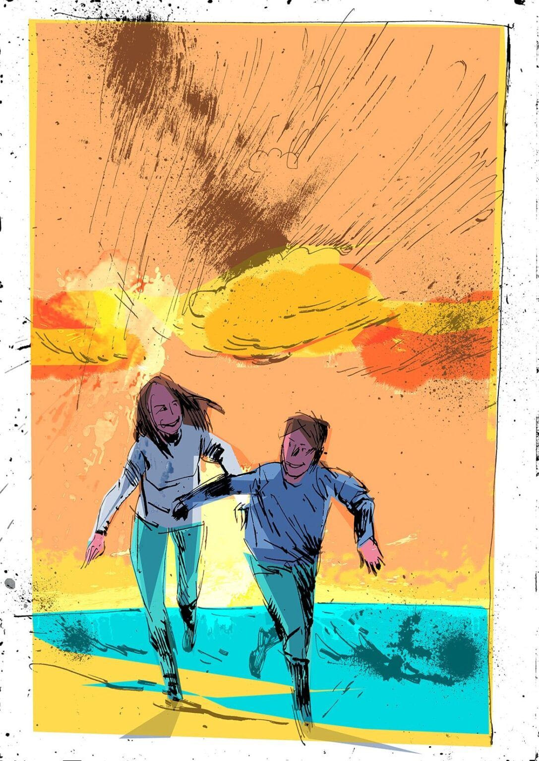Άρχισε να ζαλίζεται μέχρι τα πίξελ να σχηματίζουν ξανά το περιβάλλον γύρω του. Βρέθηκε στο σπίτι τους στη Θεσσαλονίκη. Οι φωτογραφίες στους τοίχους είχαν αντικατασταθεί με εικόνες που δεν αναγνώριζε: μια γυναίκα που κρατούσε έναν ήλιο στα χέρια της· έναν άντρα χωρίς δέρμα που χαμογελούσε. Ο κόσμος έξω από το παράθυρο δεν υπήρχε πια, μόνο ένας ατελείωτος ουρανός γεμάτος μάτια που παρακολουθούσαν κάθε κίνηση.