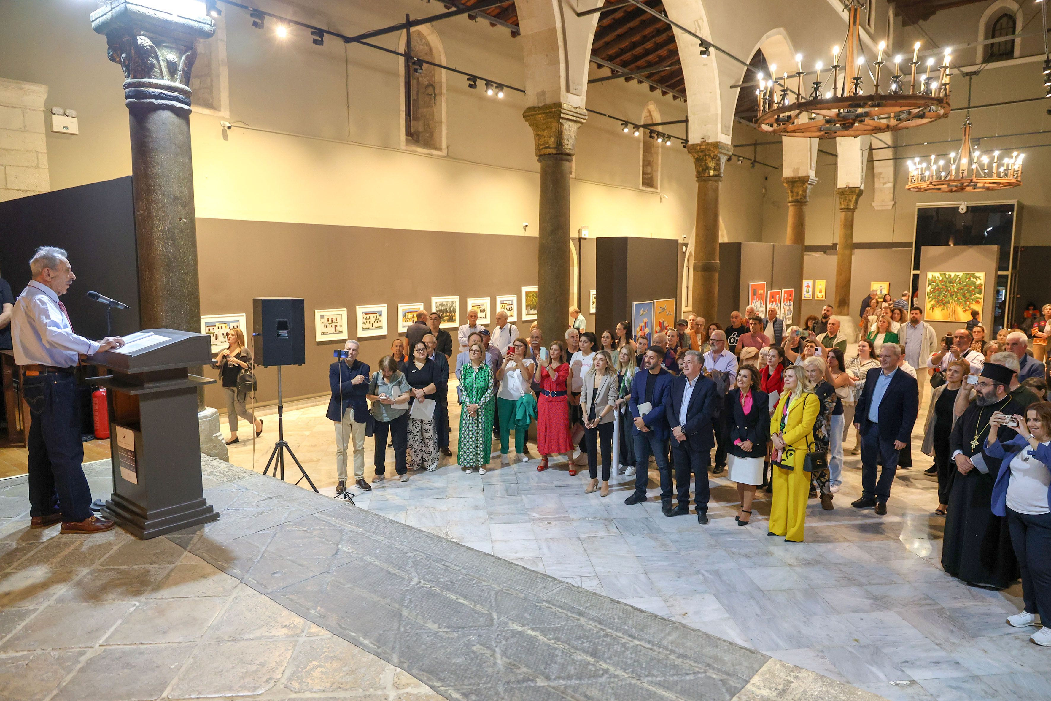 Η σπουδαία έκθεση έργων του Ηρακλειώτη ζωγράφου Αριστόδημου Παπαδάκη εγκαινιάστηκε την Τρίτη 21/10 στη Βασιλική του Αγίου Μάρκου, παρουσία του Περιφερειάρχη Κρήτης Σταύρου Αρναουτάκη, του Δήμαρχου Ηρακλείου Αλέξη Καλοκαιρινού, της Αντιπεριφερειάρχη Πολιτισμού & Ισότητας Γεωργίας Μηλάκη, της Αντιδημάρχου Πολιτισμού Ρένας Παπαδάκη – Σκαλίδη, του Περιφερειακού Συμβούλου και προέδρου της ΔΑΙΔΑΛΟΣ ΑΕ ΟΤΑ Κώστα Φασουλάκη, του εκπροσώπου του Αρχιεπισκόπου Κρήτης Αρχιμανδρίτη Δημήτριου και πλήθους κόσμου.