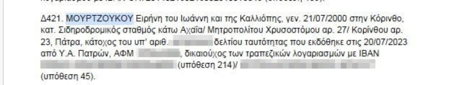 Την ίδια ώρα όλο και περισσότερες πληροφορίες έρχονται στο φως για το παρελθόν της 24χρονης Ειρήνης καθώς, όπως έγινε χθες γνωστό, είχε εμπλακεί σε δίκτυο απατεώνων που είχε ως κύριο μέσο δράσης την υποκλοπή τραπεζικών δεδομένων και τη μεταφορά χρημάτων μέσω «μουλαριών». Ο ρόλος της στο κύκλωμα ήταν ουσιαστικά να εκχωρεί τραπεζικούς λογαριασμούς στο όνομά της με σκοπό το ξέπλυμα χρήματος.