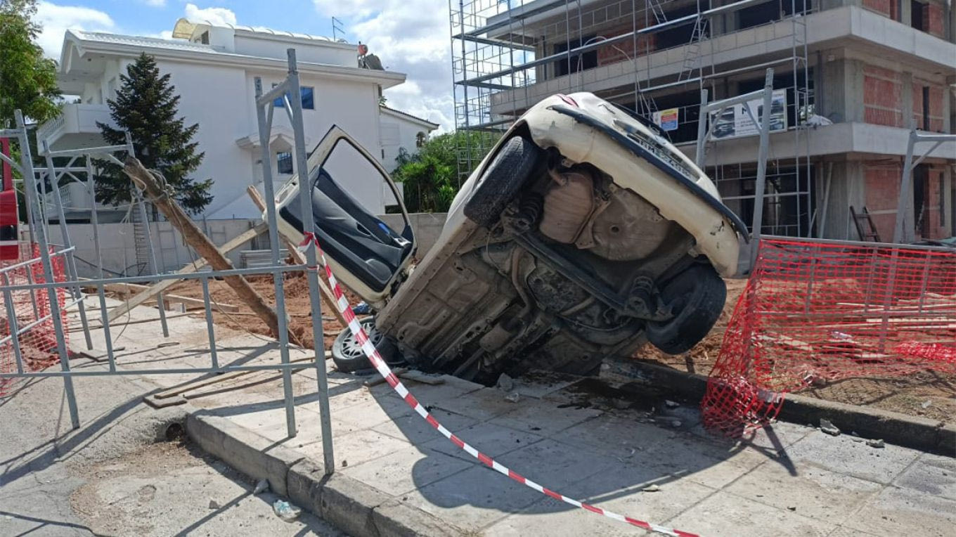 Τελικά επί της οδού Αχαρνών στην Κηφισιά το όχημα προσέκρουσε σε κολόνα και στη συνέχεια κατέληξε σε μία αυλή οικοδομής, έξω από την τοπική ΔΟΥ.
