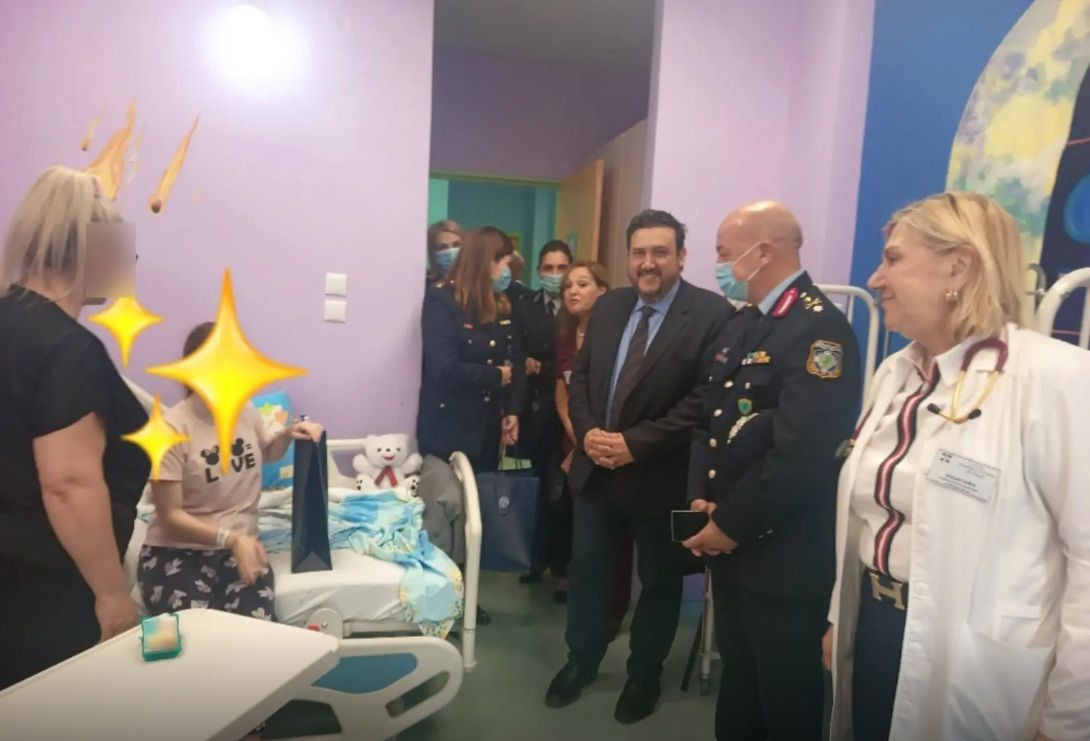 Αστυνομικοί της Γενικής Περιφερειακής Αστυνομικής Διεύθυνσης Θεσσαλίας πρόσφεραν χαρά και ξέγνοιαστες στιγμές στα παιδιά που νοσηλεύονται στις πτέρυγες των παιδιατρικών κλινικών των δύο νοσοκομείων της Λάρισας