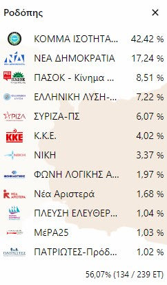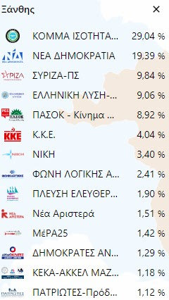 Ειδικότερα, στην Ξάνθη με την ενσωμάτωση να βρίσκεται 55%, το Κόμμα Ισότητας Ειρήνης και Φιλίας (ΚΙΕΦ) συγκεντρώνει 29%, η ΝΔ βρίσκεται στο 20% και ο ΣΥΡΙΖΑ στο 9%.