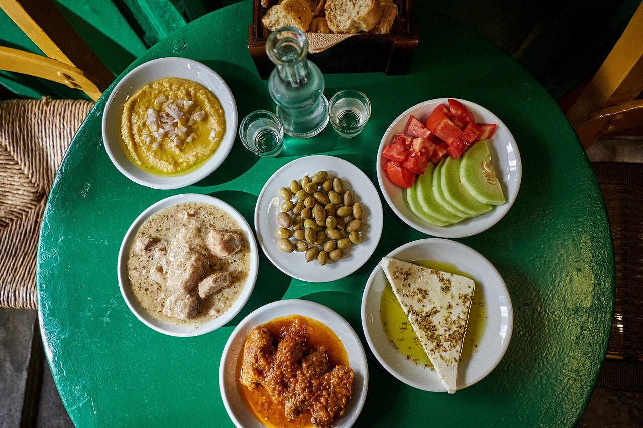 Οι μεζέδες της ρακής είναι θεσπέσιοι σαν ο καφετζής κι η καφετζίνα είναι μερακλήδες. Το λεπτό χιούμορ και ο διακριτικός έλεγχος της κατάστασης είναι μεγάλο προνόμιο. Τα μεζεκλίκια της ρακής σερβίρονται σε μικρά πιατάκια. Οφτές πατάτες στο φούρνο, ελιές, ντάκο με λάδι, σταμναγκάθι ή καλίτσες πασπαλισμένες με αλάτι και με λεμόνι, μπουμπουριστούς χοχλιούς, χλωροκούκια, αγκινάρες, ντολμαδάκια με ανθούς κολοκυθιάς, αθότυρο, κεφαλοτύρι, λουμπούνια, λάχανο, ντομάτες, αγγούρι .