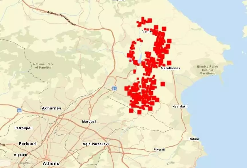 Το μέγεθος της φωτιάς αποτυπώνεται σε χάρτη της ΝASA.