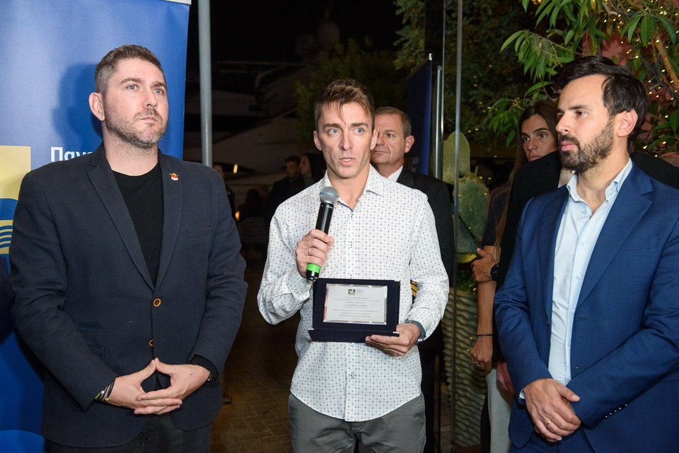 Μαζί με τους συναδέλφους του, αλλά και τον Εύζωνα που δάκρυσε ανάμεσα στα τιμώμενα πρόσωπα που βράβευσε η Ένωση Πληρωμάτων Ιδιωτικών και Επαγγελματικών Θαλαμηγών