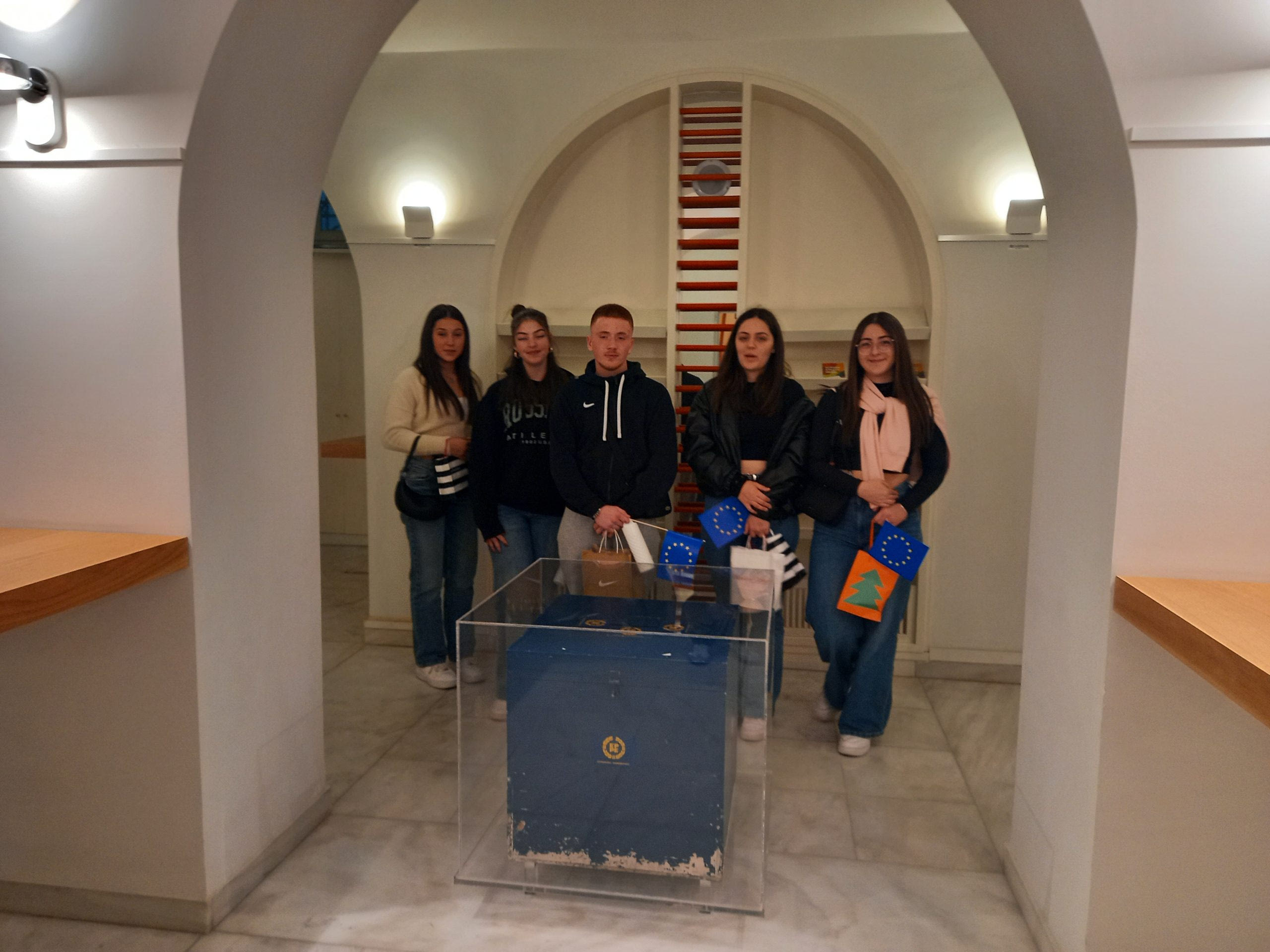 Επίσης, μίλησαν για το πολύ υψηλού επιπέδου Πρόγραμμα, στο οποίο συμμετέχουμε, καθώς και για την πλατφόρμα together.eu. Στη συνέχεια, έγινε συζήτηση και ενημέρωση αναφορικά με τις Ευρωεκλογές του 2024 και τα παιδιά ξεναγήθηκαν στους χώρους του κτηρίου, όπου είδαν την κάλπη που χρησιμοποιήθηκε στις πρώτες Ευρωεκλογές, στην Ελλάδα, το 1994.