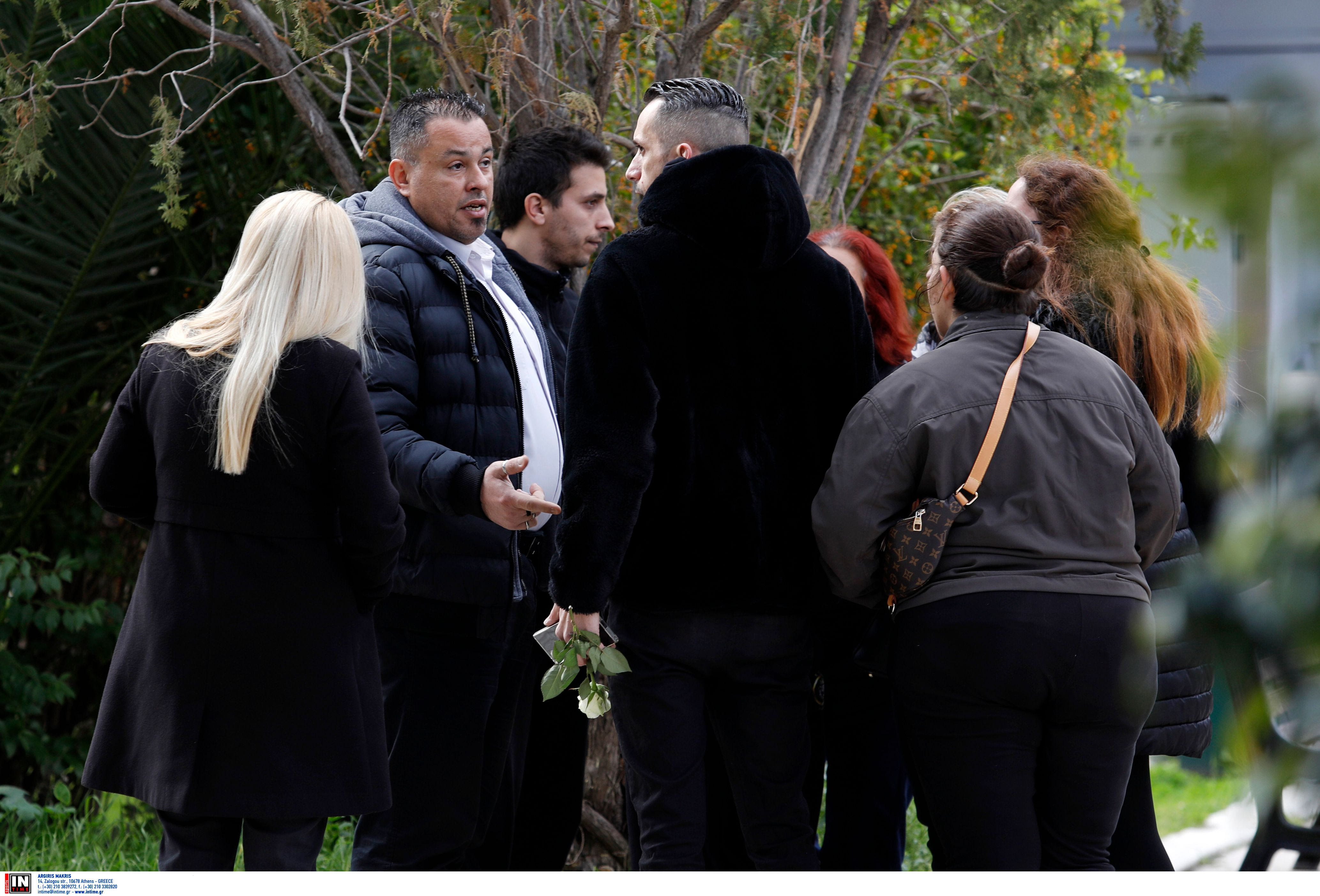 Στην κηδεία βρίσκεται και ο βιολογικός πατέρας του αδικοχαμένου παιδιού, με συγγενείς στο πλάι του.