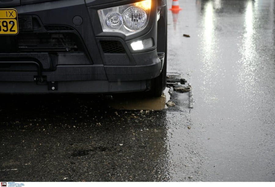 Για να μην γεμίσει λοιπόν λύματα ο δρόμος από το φρεατίου που εκείνη την στιγμή υπερχείλιζε, οι υπεύθυνοι της ΕΥΔΑΠ έβαλαν τη ρόδα του φορτηγού του Οργανισμού για να σταματήσουν την εκροή υδάτων.