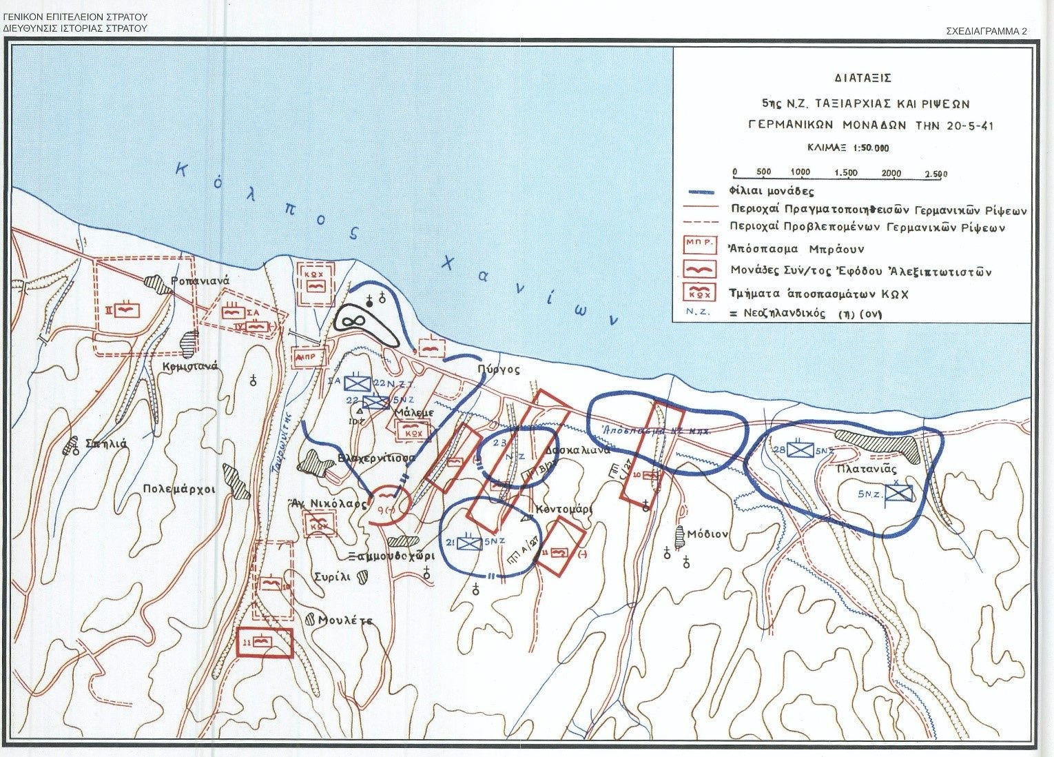 Με βάση τη σπουδαιότητα και την ευπάθεια των στρατηγικών σημείων της νήσου, οι Δυνάμεις κατανεμήθηκαν στους Τομείς Μάλεμε, Χανίων, Ρεθύμνου και Ηρακλείου έχοντας ως αποστολή την άμυνα της νήσου, απαγορεύοντας στον εχθρό τη χρησιμοποίηση των αεροδρομίων και λιμένων της.