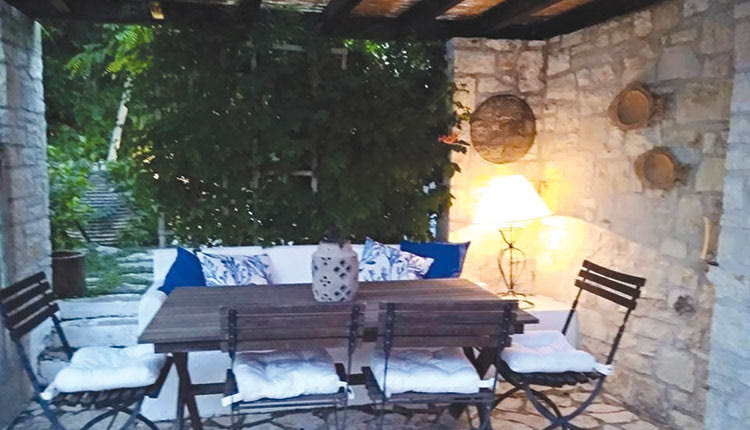 “Όλοι είμαστε δεμένοι μ’ αυτόν τον χώρο, όλοι στην οικογένεια το αγαπάμε αυτό το νησί” μας είπε η κ. Μαλάμη, η οποία μας πρόσφερε παγωμένο λευκό κρασί στον κήπο και μας ξενάγησε στο καλόγουστο παραδοσιακό δίπατο σπίτι με τα κεραμίδια, που σου μεταδίδει την ζεστασιά των ανθρώπων που το κατοικούν.