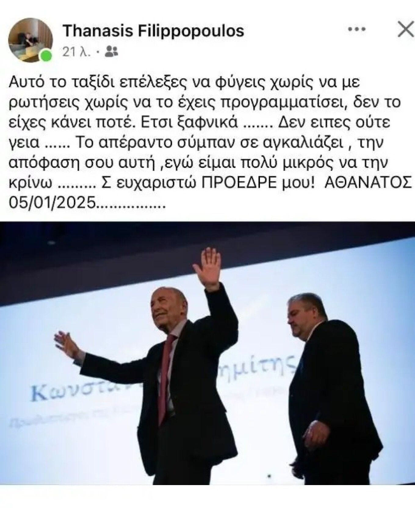 Η ανάρτηση του Θανάση Φιλιππόπουλου: