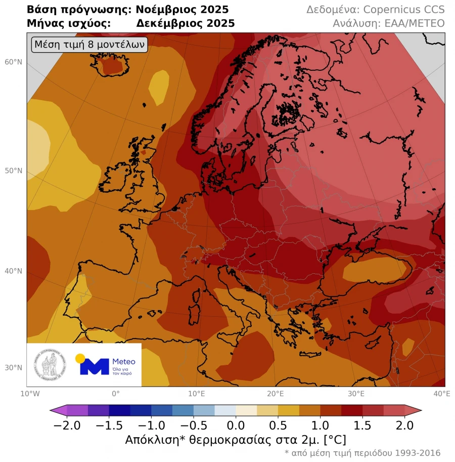 Θερμότερος του κανονικού αναμένεται να είναι ο ερχόμενος Δεκέμβριος στην ΝΑ Ευρώπη (συμπεριλαμβανομένης της Ελλάδας) σύμφωνα με τις μακροπρόθεσμες προγνώσεις που εκδόθηκαν στις αρχές Νοεμβρίου.