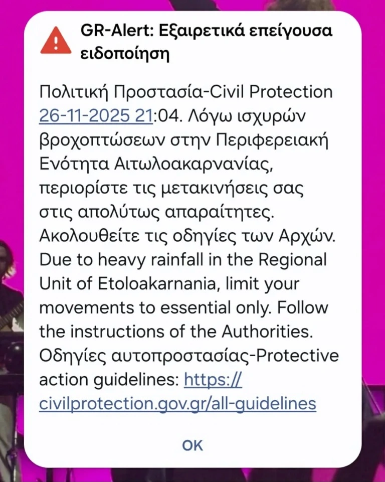 Ήχησε πριν από λίγη ώρα στα κινητά των κατοίκων της Αιτωλοακαρνανίας το 112 για την κακοκαιρία Adel.