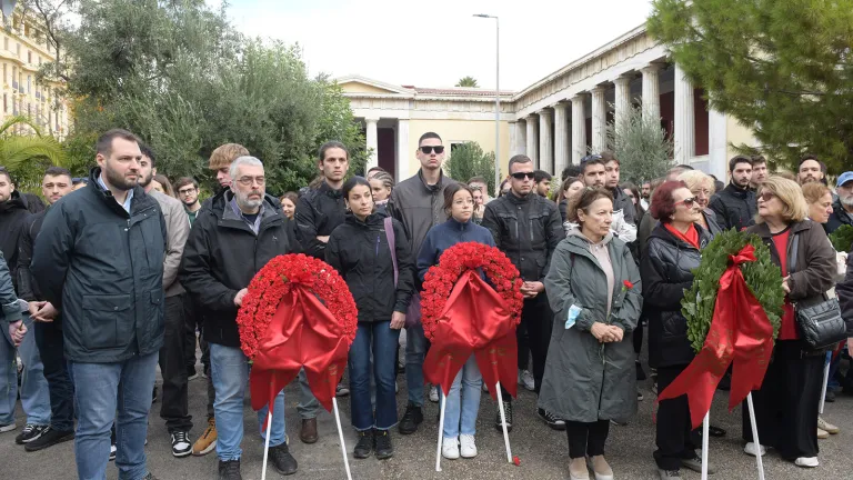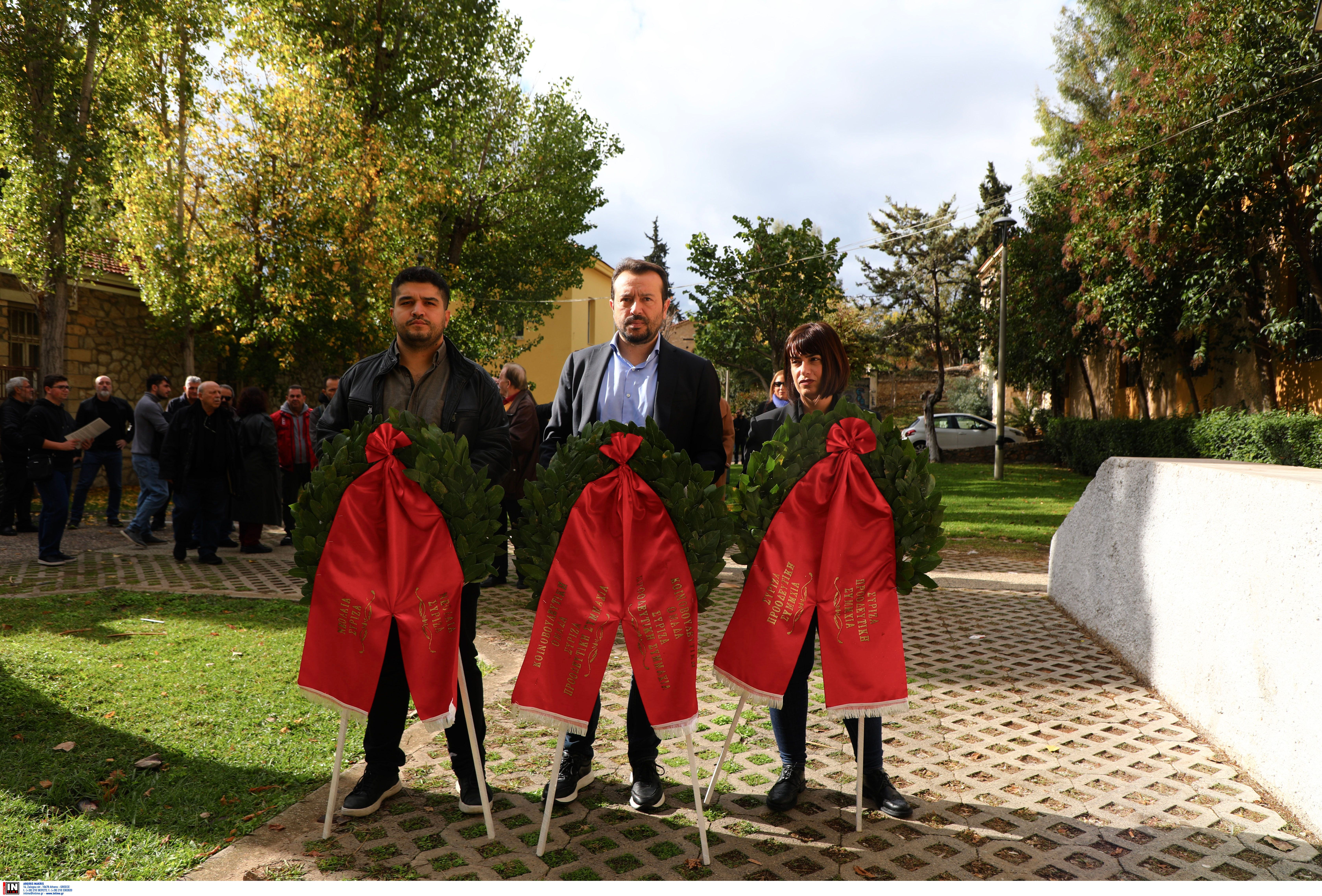 Στεφάνια στον χώρο του Πολυτεχνείου κατέθεσαν αντιπροσωπείες του ΚΚΕ και της ΚΝΕ.