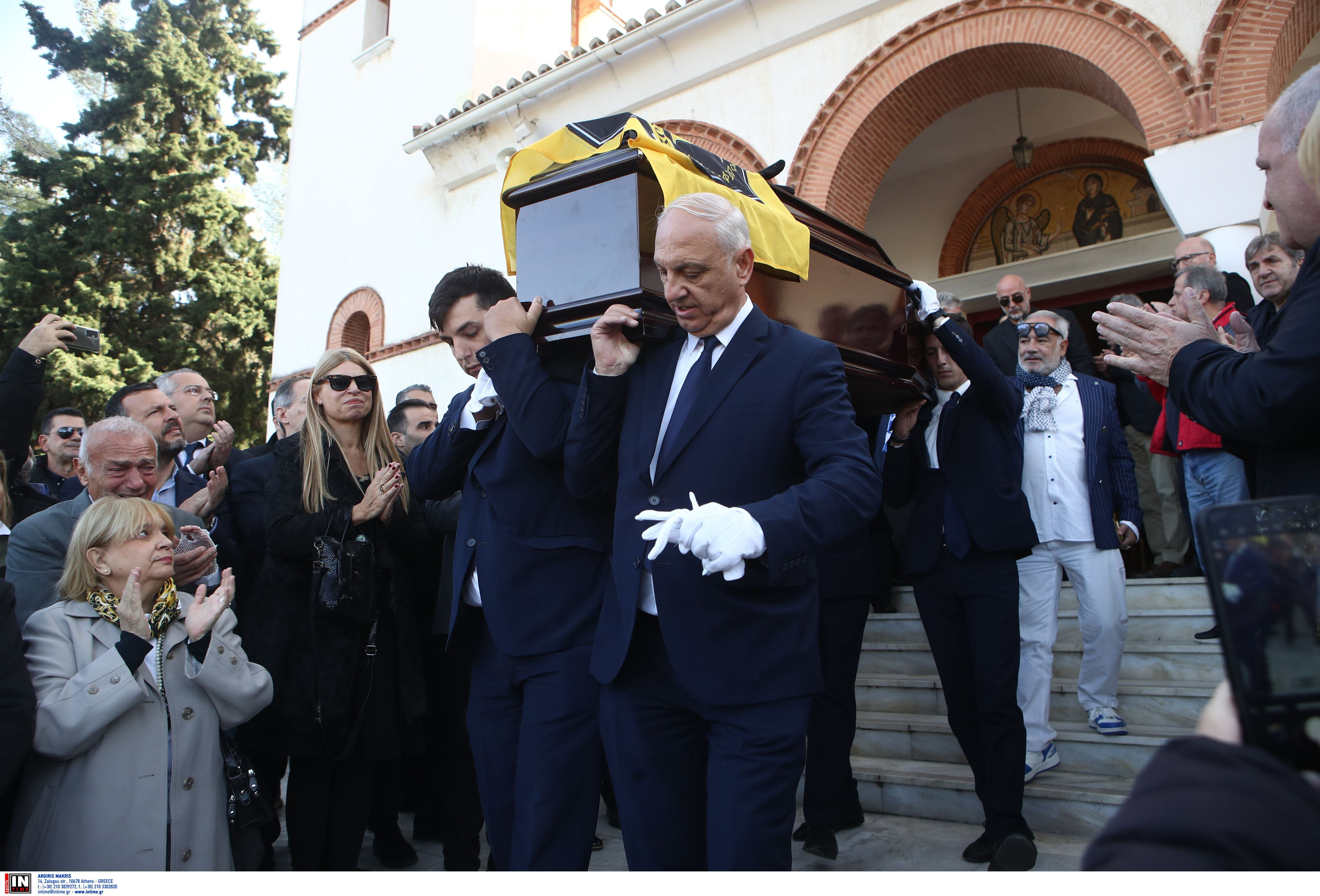 Στο τελευταίο αντίο βρέθηκαν, φυσικά, κορυφαίες “φιγούρες” του ελληνικού ποδοσφαίρου, όπως ο Αντώνης Αντωνιάδης, άνθρωποι από τον πολιτικό και τον καλλιτεχνικό χώρο, όπως ο Νίκος Χαρδαλιάς και ο Κώστας Πρέκας, ενώ στεφάνια έστειλαν όλες οι ομάδες που αγωνίστηκε αλλά και ο Βαγγέλης Μαρινάκης.