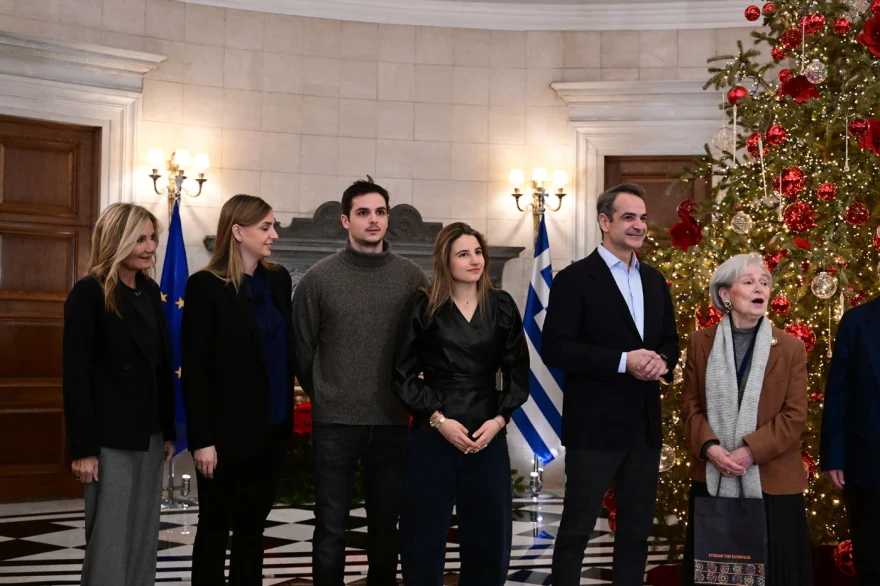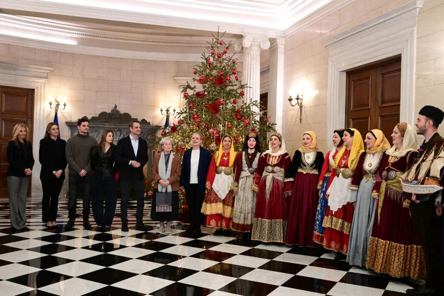 Κάλαντα και ευχές για τον πρωθυπουργό Κυριάκο Μητσοτάκη στο Μέγαρο Μαξίμου.