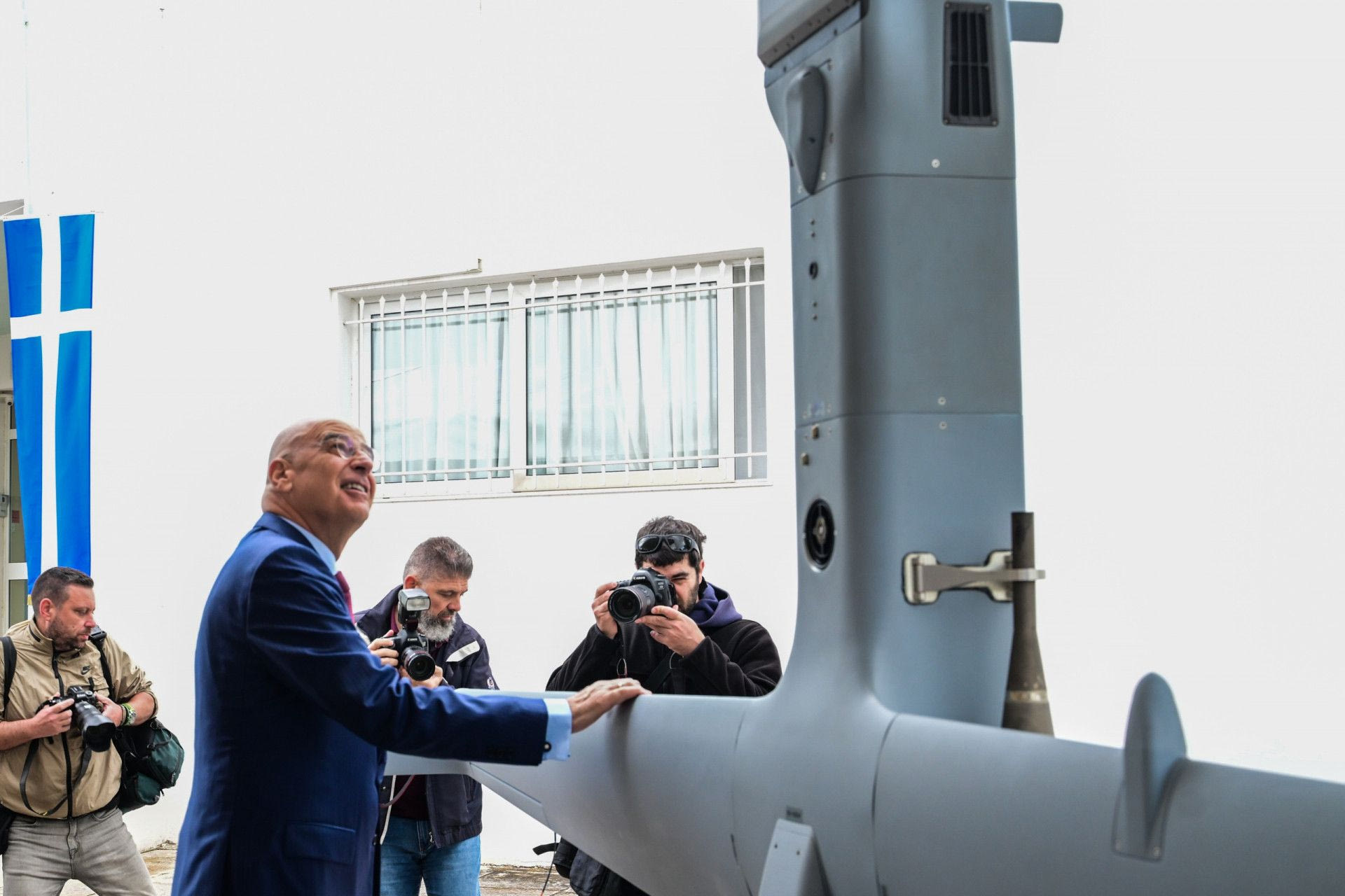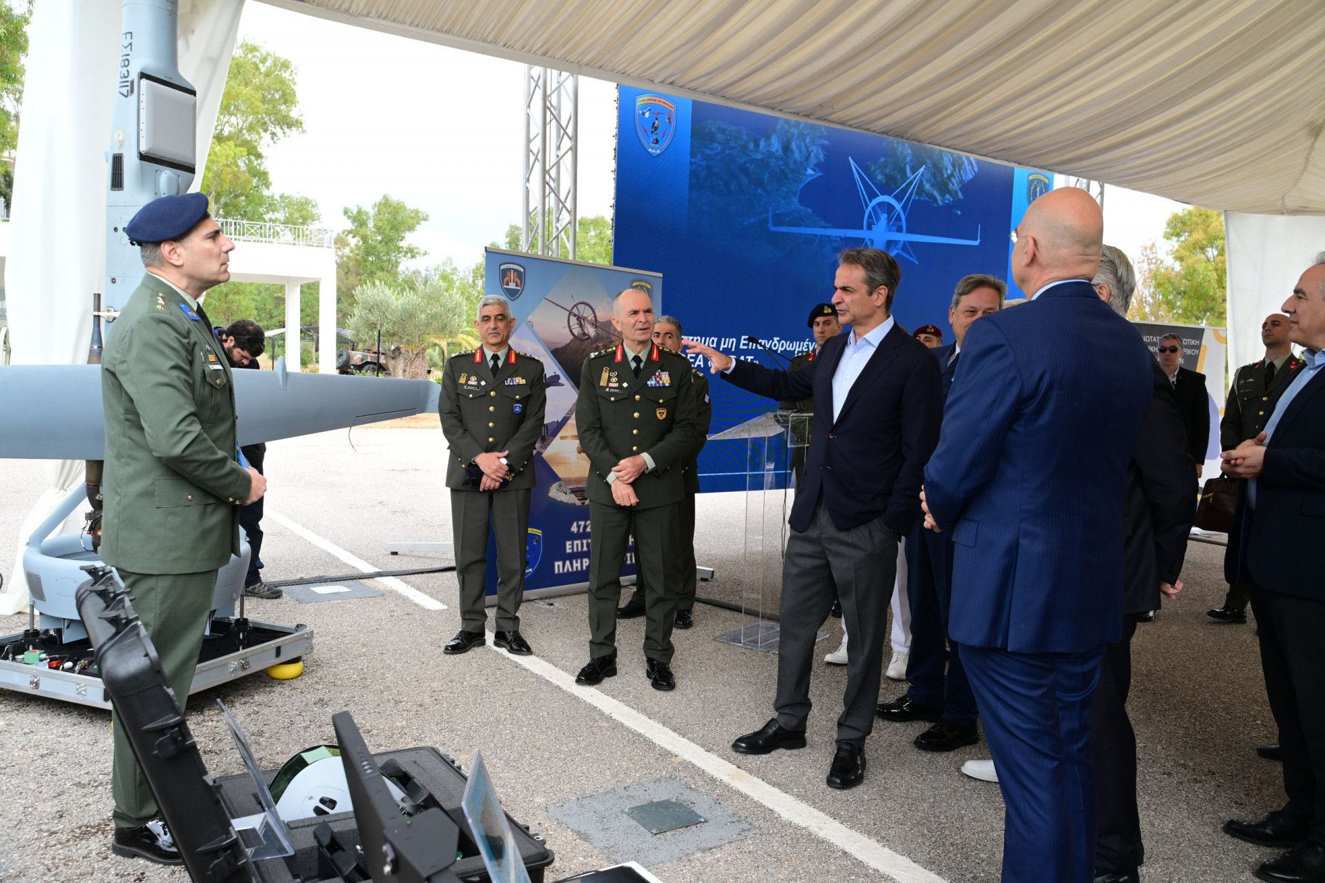 Στην τελετή ένταξης του συστήματος μη επανδρωμένων αεροχημάτων V-BAT, που πραγματοποιήθηκε στην έδρα της ΑΣΔΕΝ, παρευρέθηκε ο πρωθυπουργός Κυριάκος Μητσοτάκης.