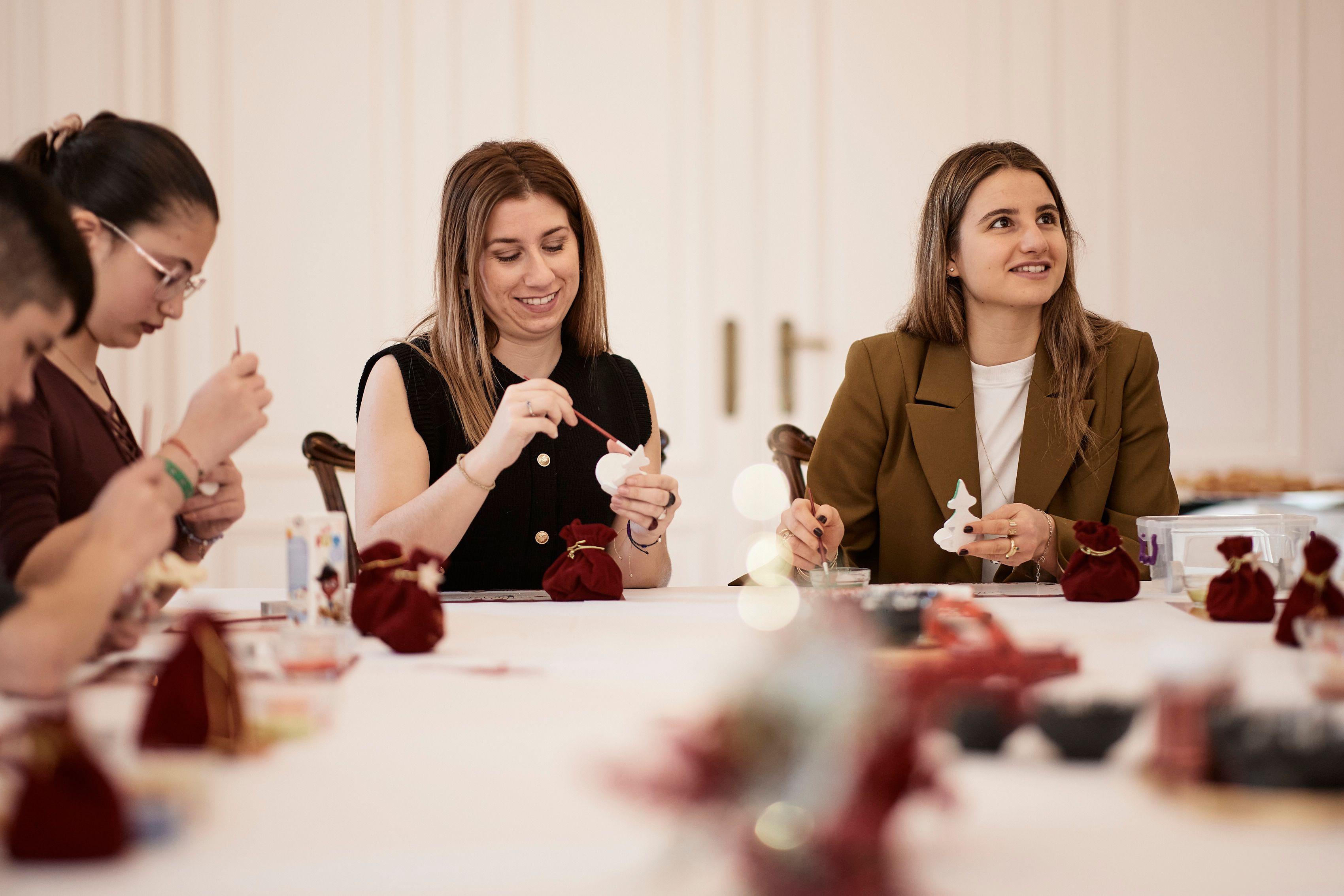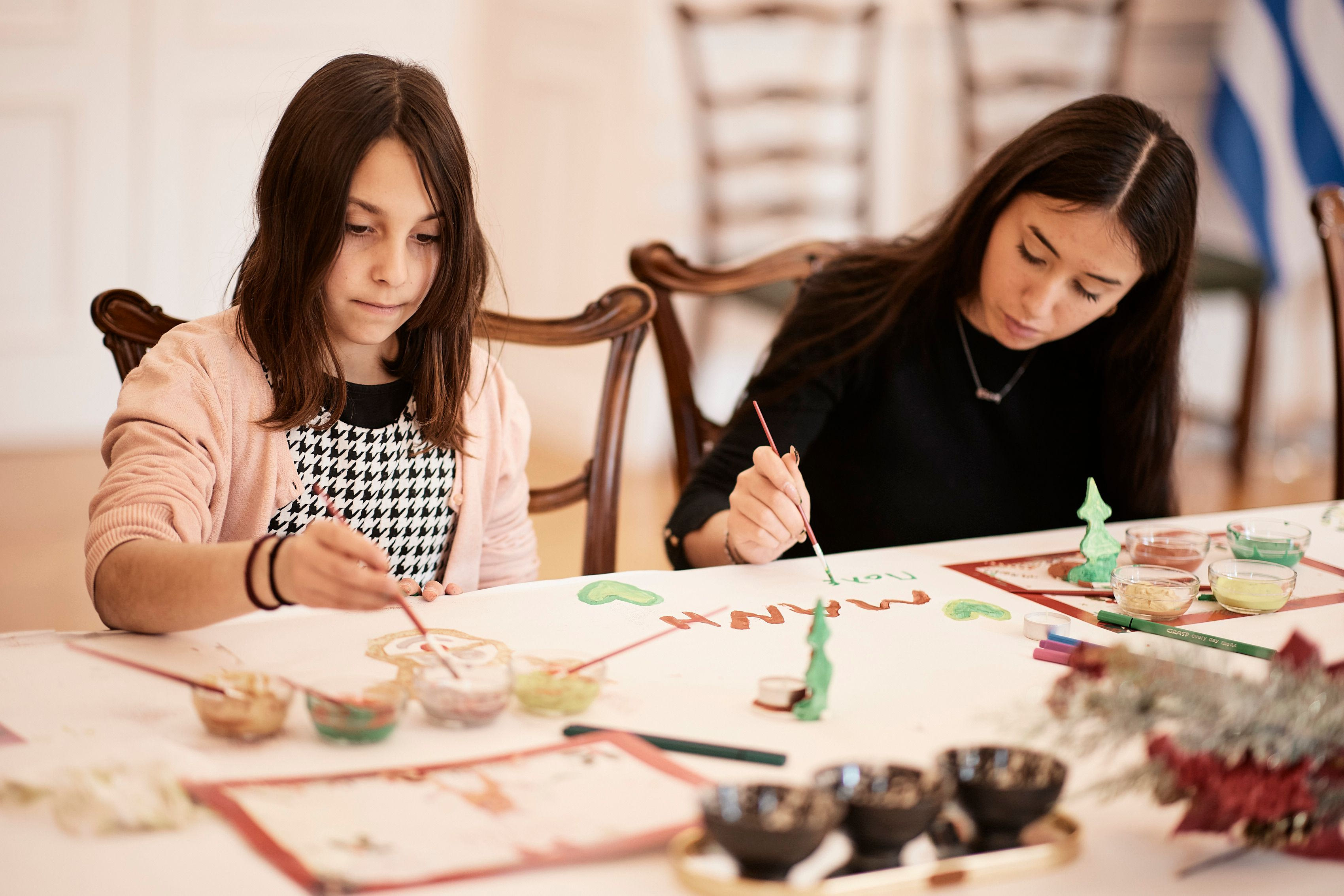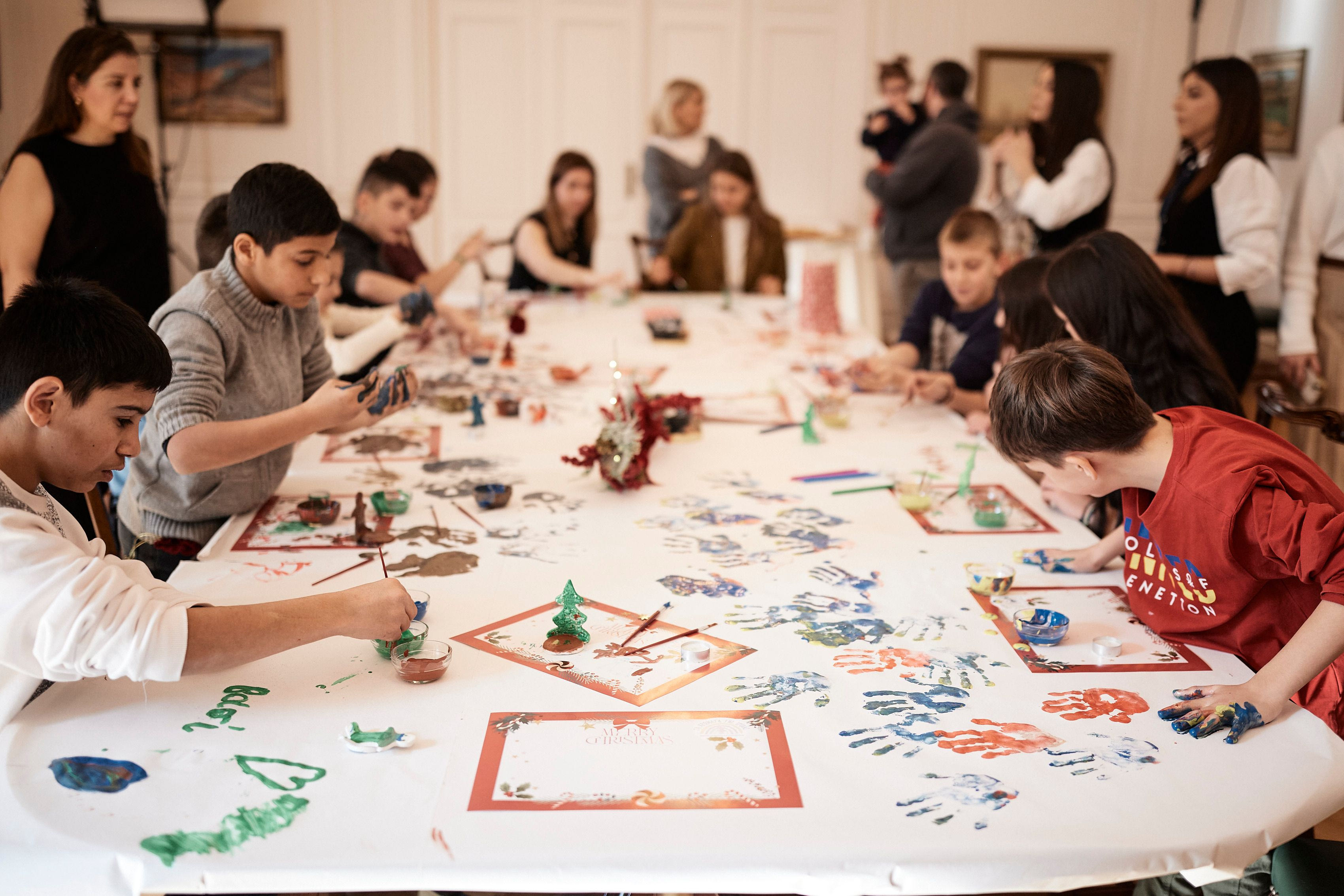 Στη συνέχεια, τα αγόρια και κορίτσια ζωγράφισαν και έκαναν χειροτεχνίες, με τη βοήθεια των συνοδών τους και παιδαγωγών από το κέντρο έκφρασης «Τα Χρώματα της Ίριδας», δίνοντας στον Πρωθυπουργό και στην κόρη του εορταστικές κάρτες.